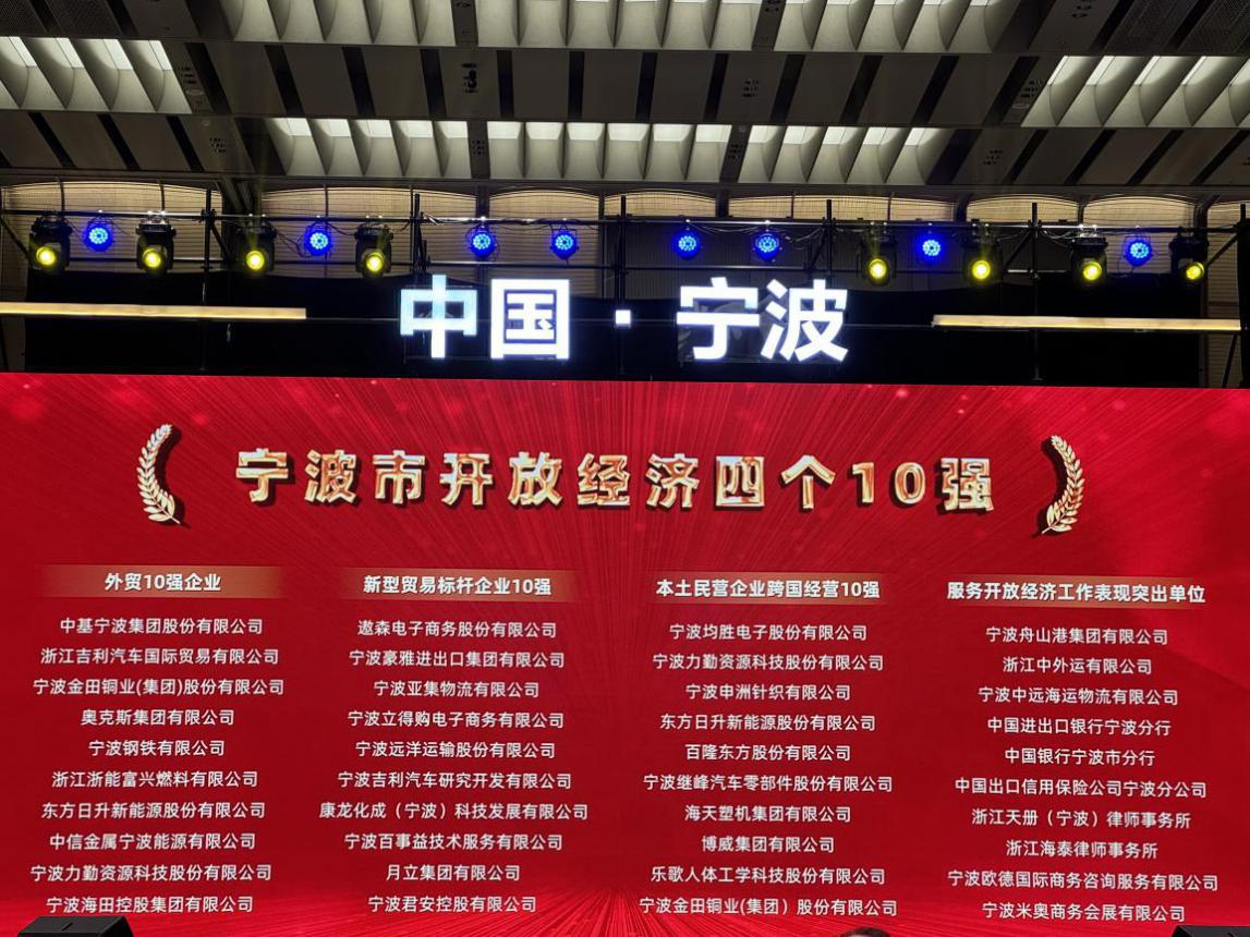 喜訊:寧波海田控股集團榮獲寧波市外貿10強企業(yè)
